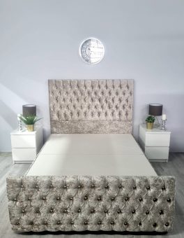 Beaded Bianca Chesterfield Buttoned Ottoman Gas Lift bed Frame